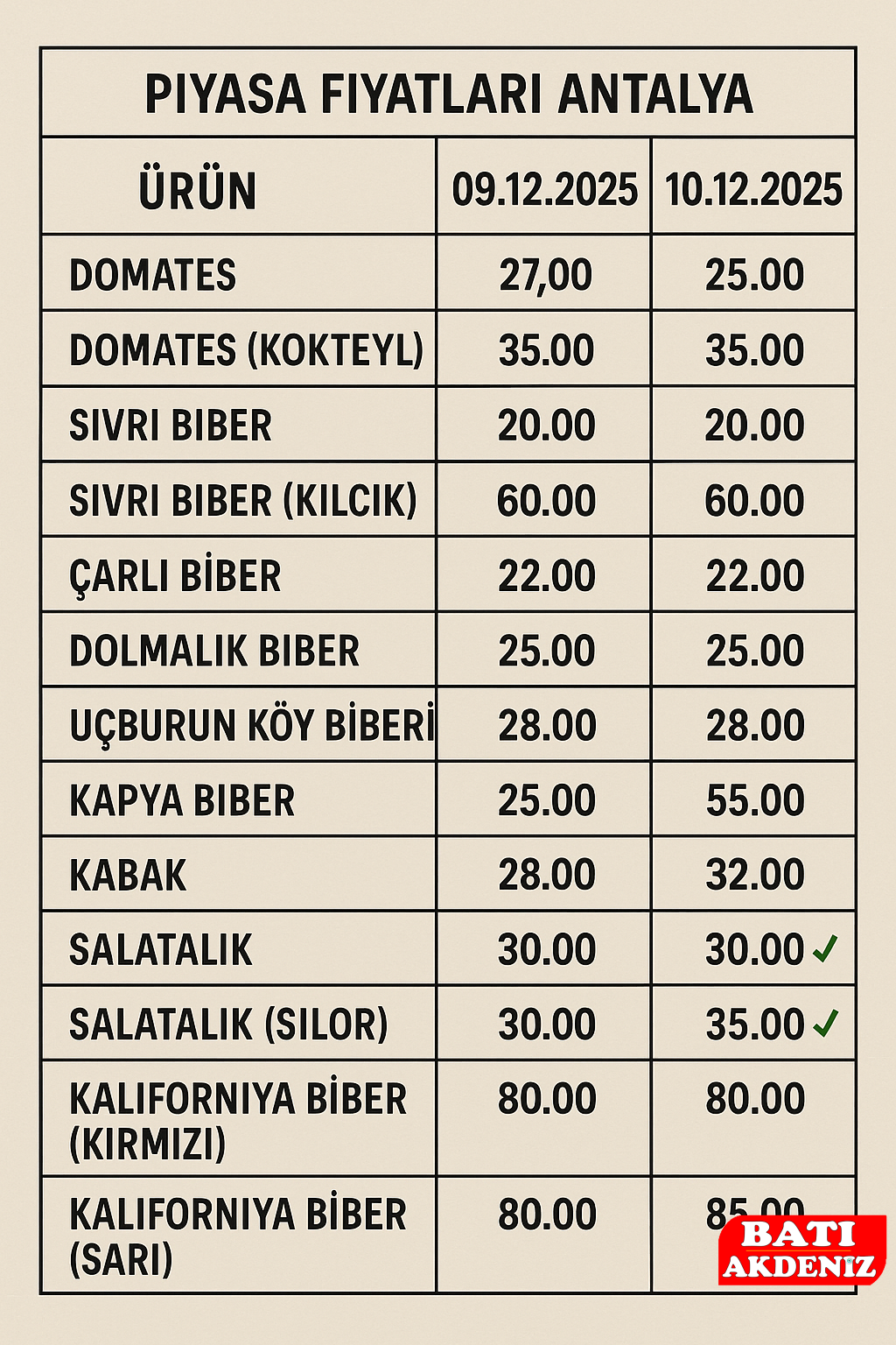Antalya, Türkiye’nin yaş sebze-meyve üretiminde öncü şehirlerinden biri olduğu için hal fiyatları sadece üreticiyi değil; zincir marketleri, pazarcıları ve tüketicileri de yakından ilgilendiriyor.