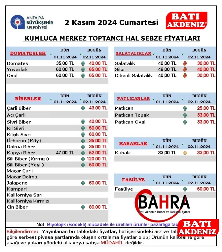 2 #Kasım 2024 #Cumartesi #Antalya #Kumluca #Elmalı #Finike #Serik #Alanya #Konaklı #Gazipaşa #Burdur #Söğüt #Tefenni #Mersin #Muğla #Fethiye #Karaçulha #Karadere #Kumluova #Ortaca #Toptancı #Halleri #Sebze #Meyve #Hal #Fiyatları #Piyasa #Tahta