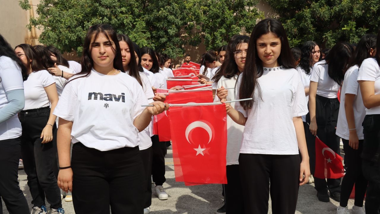 Merkez Çukurova ilçesi Süleyman Demirel Bulvarı'ndaki Adana Kız Lisesi'nde başlayan yürüyüşte öğrenciler, 100 metre uzunluğundaki Türk Bayrağı ile marşlar söyleyerek yürüdü.