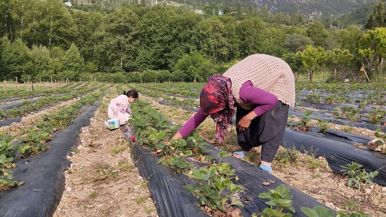 Bahçede gübre ve ilaç kullanılmayan girişimciler, yetiştirilen çilekleri müşterilerin kendisinin seçip toplamasına karar verdi.