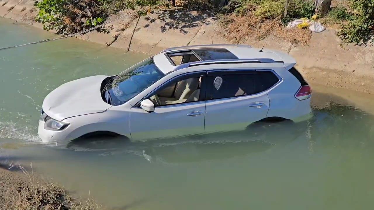 Bozkurt'un kullandığı araç, köpeğe çarpmamak için yaptığı manevra nedeniyle yarısı dolu sulama kanalına düştü.