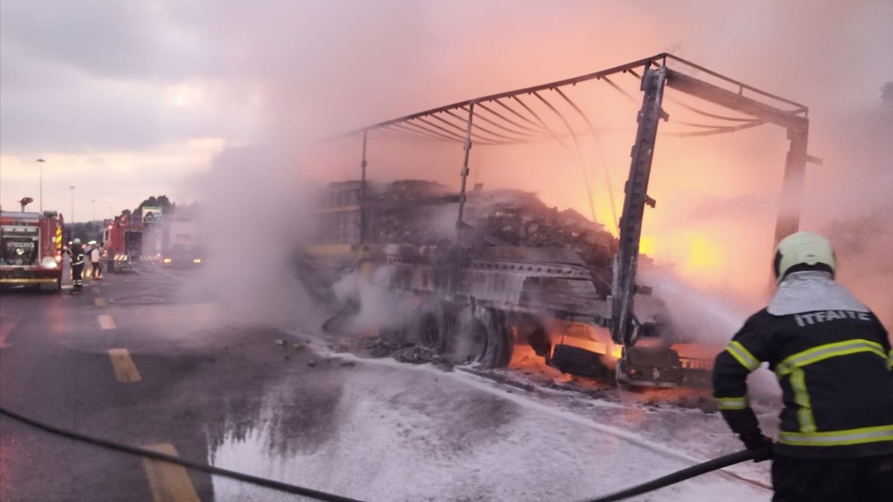 Sürücüsünün kim olduğu ve plakası henüz öğrenilemeyen tır, Tarsus-Adana-Gaziantep Otoyolu Misis mevkisinde seyrederken motor kısmından alev aldı.