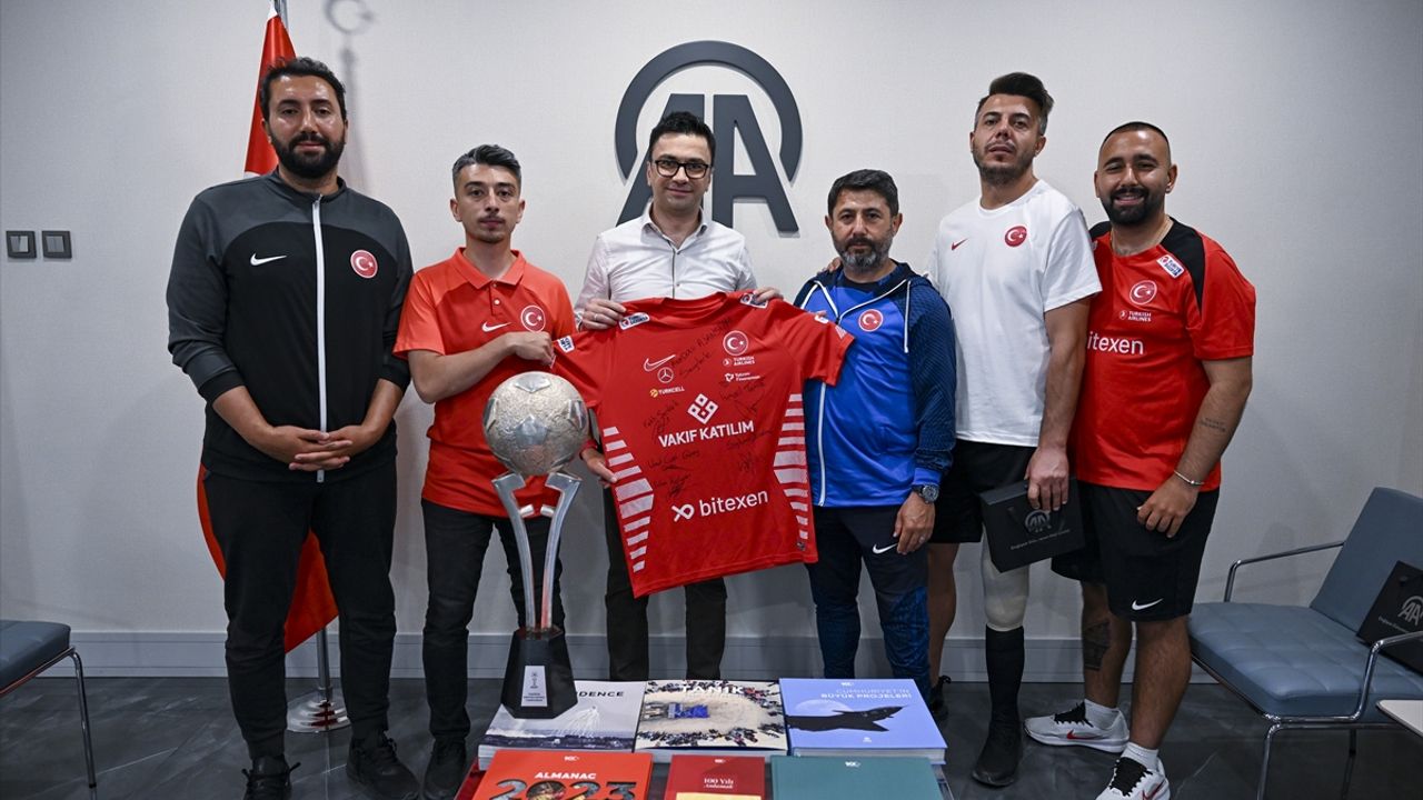 AA Genel Müdür Yardımcısı Oğuz Enis Peru, Ampute Futbol Milli Takımı teknik direktörü İsmail Temiz ve futbolcuları genel müdürlükte ağırladı.