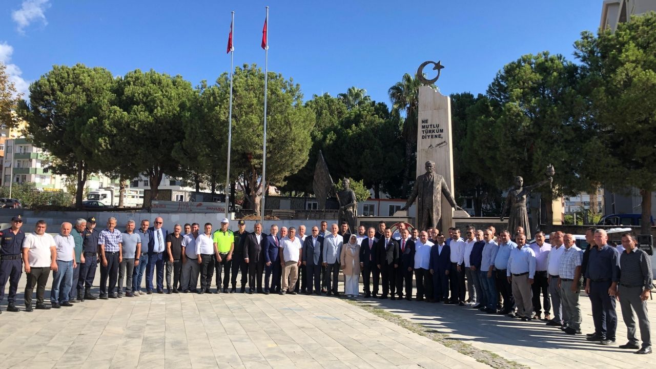 Atatürk Anıtı'na çelenk bırakan Anamur Muhtarlar Derneği Başkanı Mehmet Sarı, günün anlam ve önemini ilişkin konuşma yaptı.