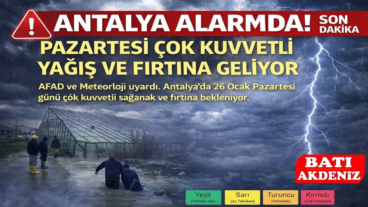 T.C. İçişleri Bakanlığı tarafından yapılan açıklamada, Meteoroloji’den alınan son değerlendirmelere göre 26 Ocak Pazartesi günü Antalya genelinde yeni ve daha kuvvetli bir yağışlı hava sisteminin etkili olacağı belirtildi.