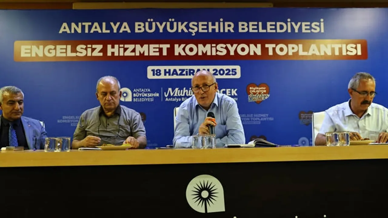 ANTALYA (İGFA) - Antalya Büyükşehir Belediyesi Engelsiz Hizmet Komisyonu 2025 yılı toplantısına Büyükşehir Belediyesi Genel Sekreter Yardımcısı Mustafa Gürbüz, Başkan Danışmanı Mehmet Karavural, daire başkanları üniversiteler, kamu kurumları, STK'lar, meslek odaları, ilçe belediyeleri ile ilgili daire başkanlıklarının temsilcileri katıldı.