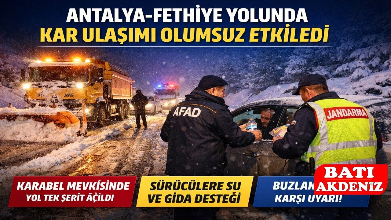 Antalya-Fethiye kara yolunda etkili olan kar yağışı, özellikle 1300 rakımlı Karabel mevkisinde sürücülere zor anlar yaşattı.