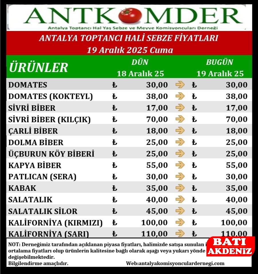 Antalya, Türkiye’nin yaş sebze-meyve üretiminde öncü şehirlerinden biri olduğu için hal fiyatları sadece üreticiyi değil; zincir marketleri, pazarcıları ve tüketicileri de yakından ilgilendiriyor.