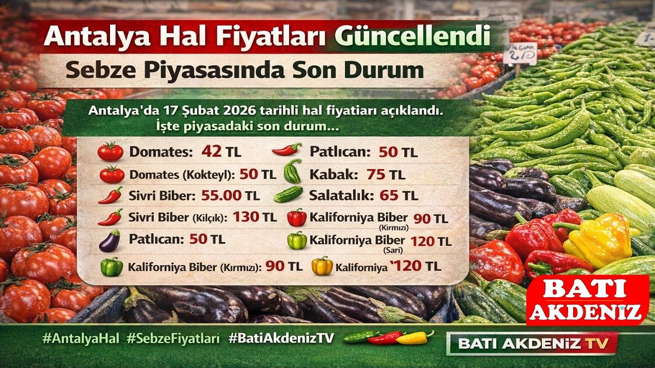Antalya halinde 17.02.2026 itibarıyla oluşan fiyatlar, sebze grubunda hareketliliğin sürdüğünü gösterdi. Özellikle örtü altı üretimin yoğun olduğu bölgelerde arz-talep dengesi fiyatlara doğrudan yansıdı.