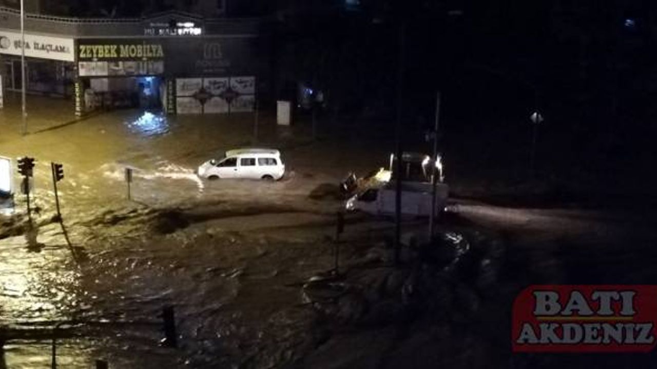 İlçede dün öğleden sonra başlayan ve aralıklarla devam eden sağanak sonrası dereler taştı. Kent merkezine ulaşan sel, su baskınlarına yol açtı.
