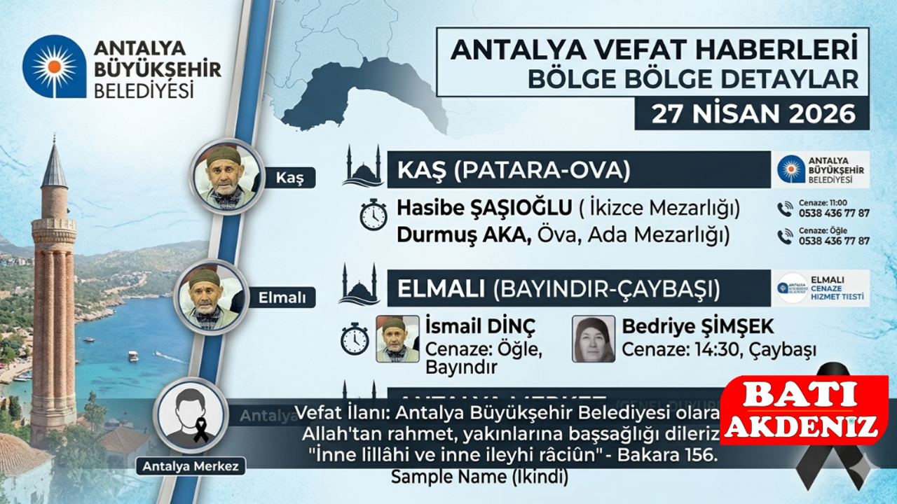 Antalya’da Bugün Vefat Edenler: 27 Nisan 2026