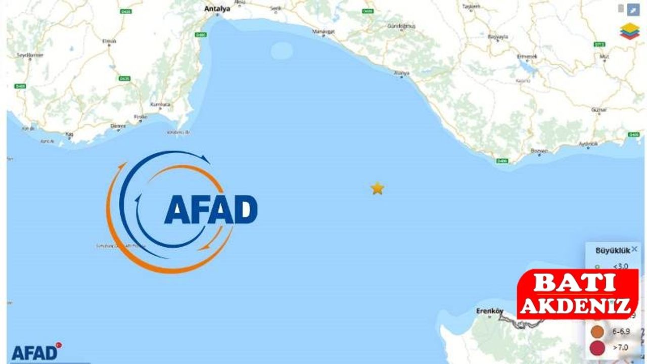 AFAD, Antalya Körfezi Alanya açıklarında 4,5 büyüklüğünde deprem olduğunu duyurdu. 7 kilometre derinlikte gerçekleşen deprem sonrası özellikle Alanya ilçesindeki vatandaşlar korkup evlerinden dışarı çıktı.