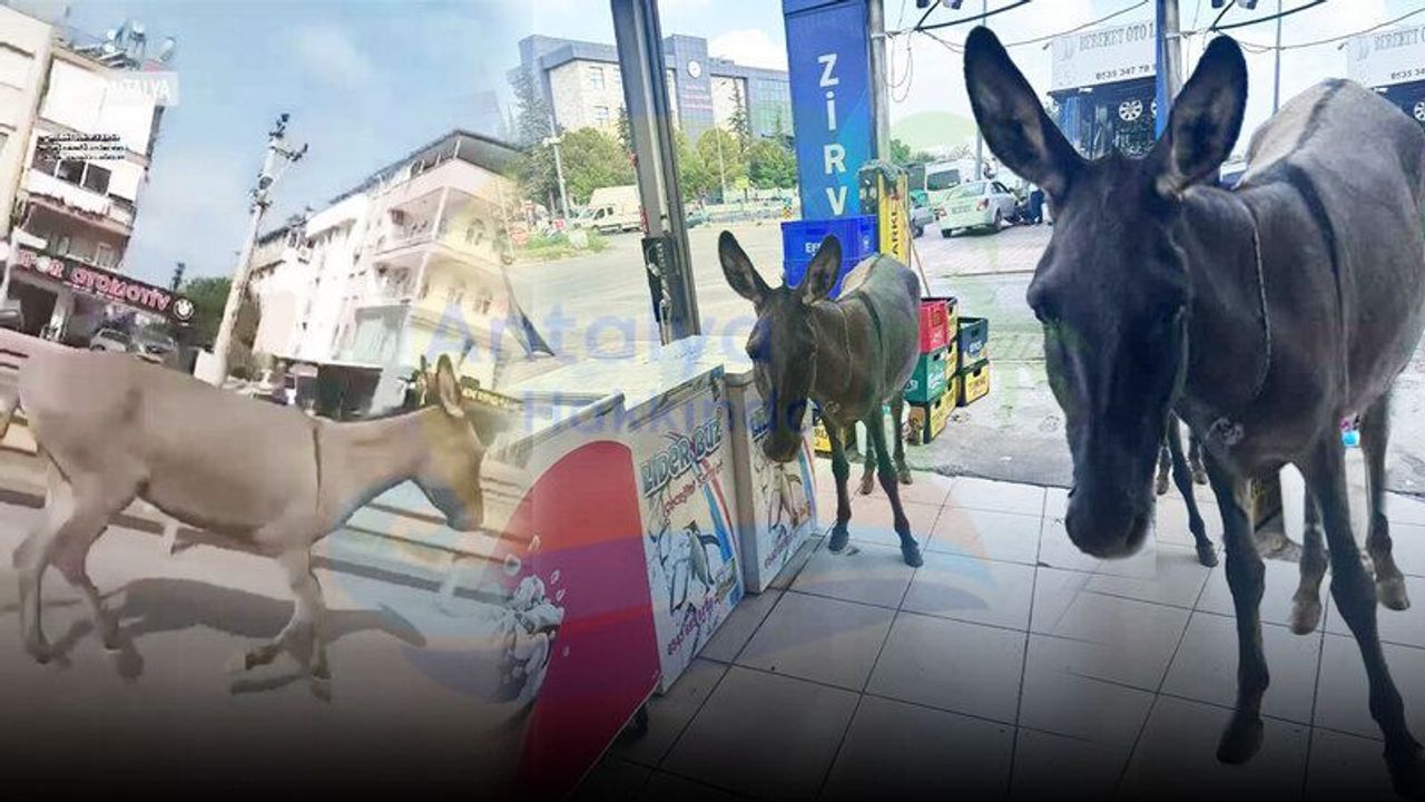 Antalya’da başıboş eşek görenleri şaşırttı! O anlar kameralara böyle yansıdı!
