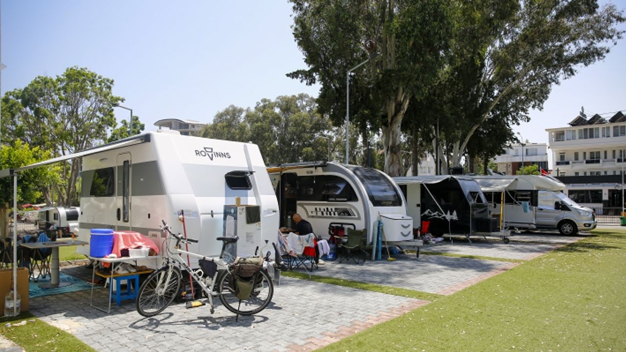 Büyükşehir Belediyesinden yapılan açıklamaya göre, Konyaaltı Sahili'ndeki park alanı, karavan tutkunlarının gözde tatil noktalarından biri haline geldi.