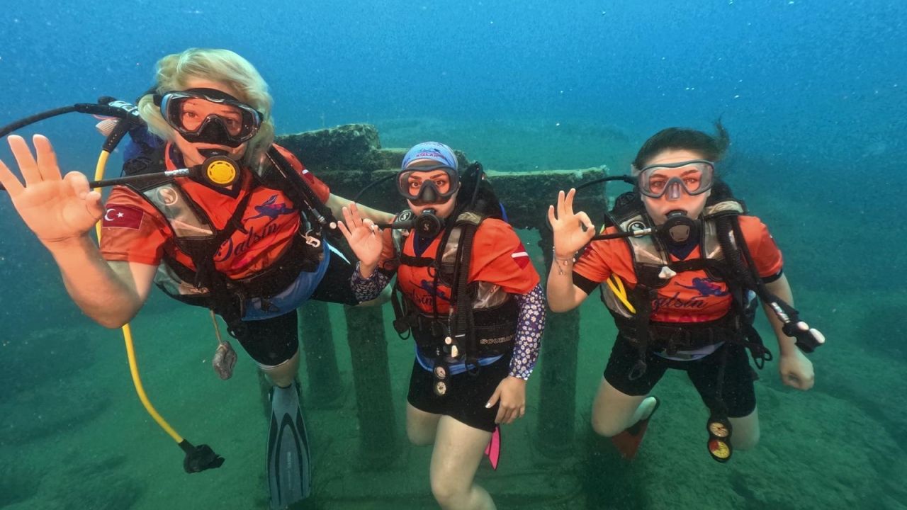 Türkiye'de ikincisi düzenlenen organizasyonda, dalış eğitmeni Gaye Dülger rehberliğinde tekneyle denize açılan kadınlar, aldıkları eğitimlerin ardından gruplar halinde Side Sualtı Müzesi'ne dalış yaptı.