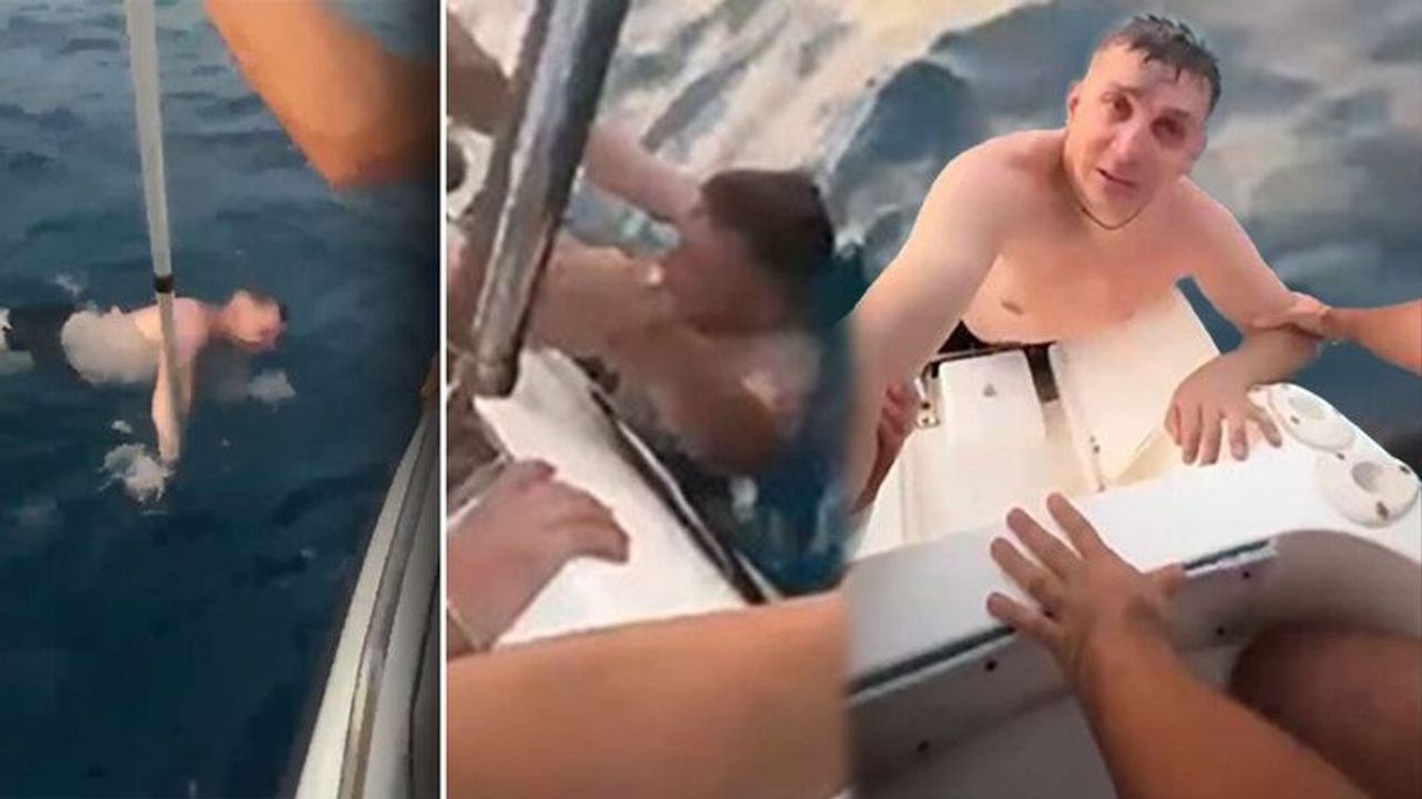 Antalya’nın Alanya ilçesi Damlataş açıklarında, Ukrayna uyruklu bir turist iddiaya göre alkol aldıktan sonra denize açıldı. Kısa sürede boğulma tehlikesi geçiren turist, çevredeki tekneciler tarafından son anda fark edilerek kurtarıldı. O anlar ise cep telefonu kamerasıyla saniye saniye kaydedildi.