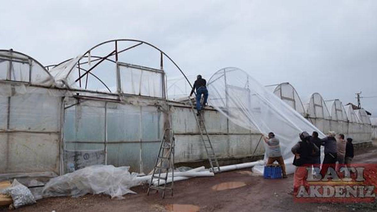 Dolu ve hortum nedeniyle çilek ve sebze seraları zarar gördü.