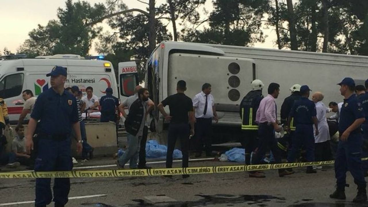 Antalya’nın Kemer ilçesi’nde minibüsün arkadan çarptığı otel servisinin devrilmesi nedeniyle ilk belirlemelere göre 3 kişi hayatını kaybetti, 11 kişi yaralandı.