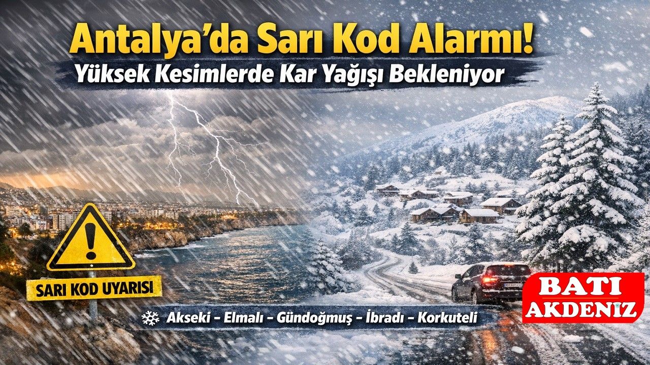 Meteoroloji Genel Müdürlüğü tarafından yapılan son hava durumu değerlendirmelerine göre Antalya genelinde sarı kodlu uyarı verildi. Uyarı kapsamında özellikle yağış, soğuk hava ve yüksek kesimlerde kar riski nedeniyle vatandaşların dikkatli ve tedbirli olması istendi.