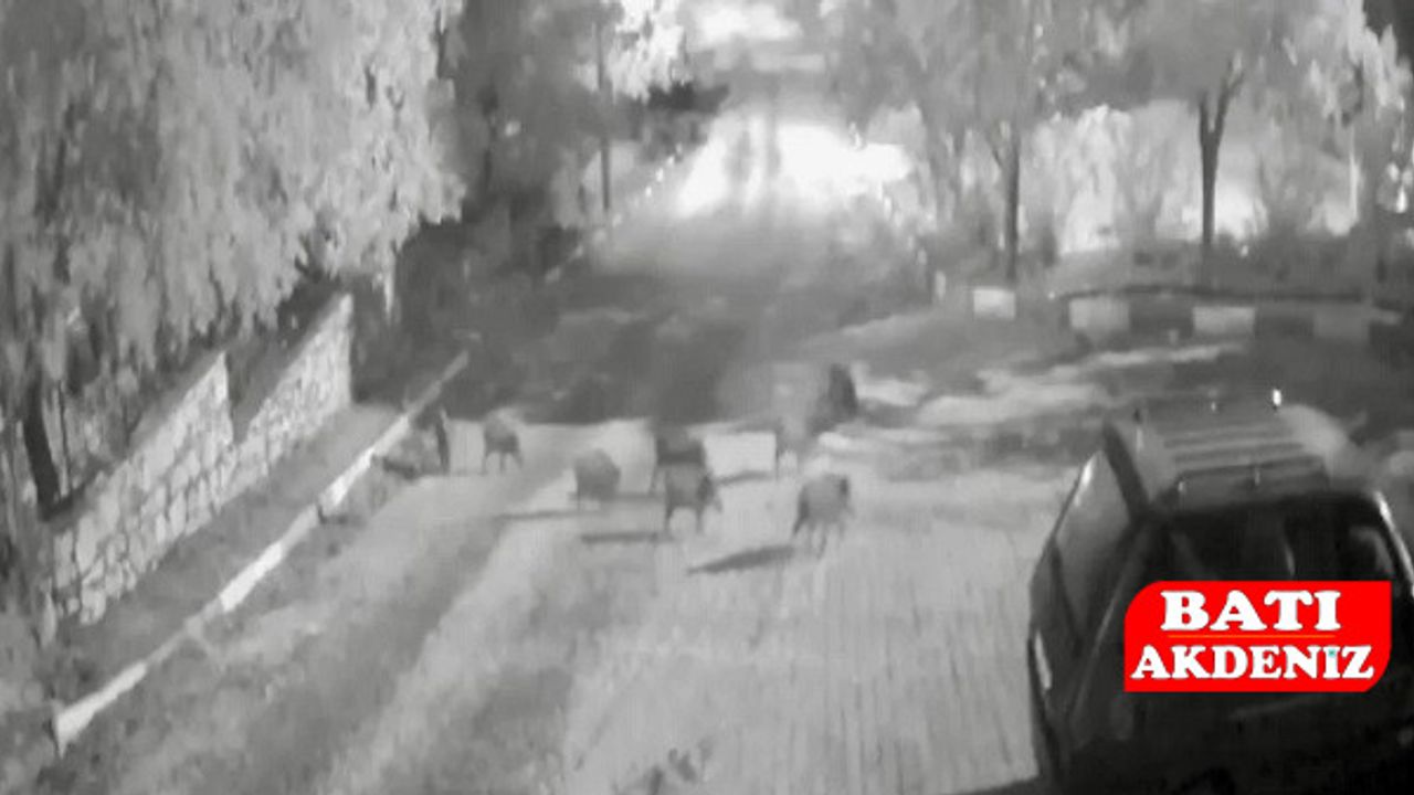 Antalya’nın Akseki ilçesine bağlı Alaçeşme Mahallesi gece saatlerinde alışılmadık bir misafiri ağırladı. Saat 01.30 sularında, ormanlık alandan çıkan yaban domuzlarından oluşan kalabalık bir sürü, mahalleye kadar indi. Sokak aralarında uzun süre dolaşan domuzlar, güvenlik kameralarına saniye saniye yansıdı.
