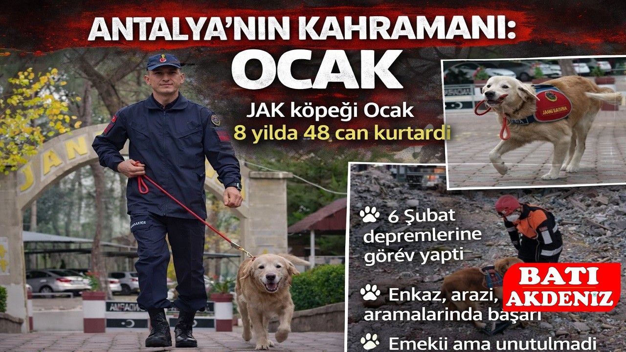 Antalya İl Jandarma Komutanlığı bünyesinde görev yapan Jandarma Arama Kurtarma (JAK) köpeği Ocak, 8 yıllık görev süresince katıldığı operasyonlarda 48 canlıyı bularak umut oldu. Enkazlardan dağlık arazilere kadar birçok zorlu şartta görev yapan Ocak, 2024 yılının Şubat ayında emekliye ayrıldı.