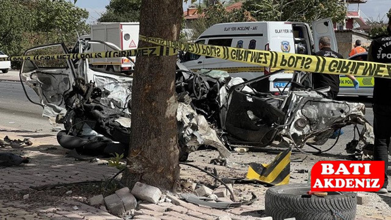 Çarpmanın şiddetiyle Hyundai marka araç önce bir direğe ardından bir ağaca çarparak adeta iki parçaya ayrıldı. Araç neredeyse hurdaya döndü.
