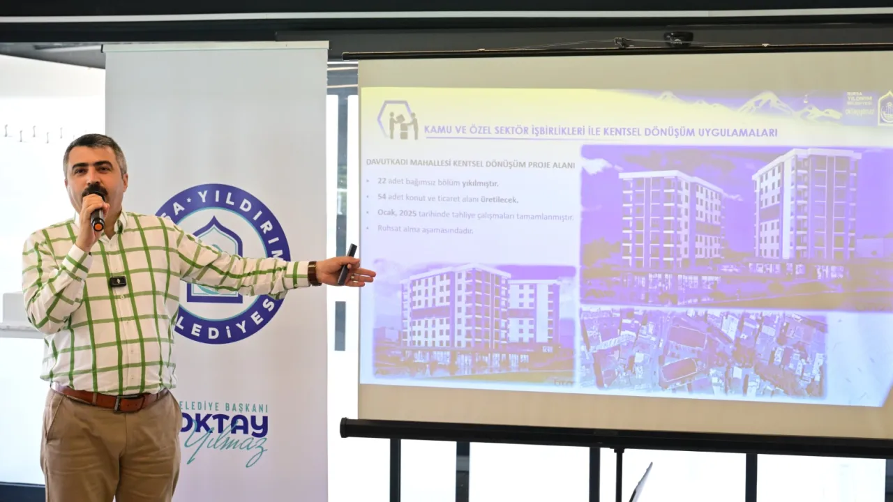 Yıldırım Belediyesi’nin kentsel dönüşüm alanında Bursa’nın en tecrübeli kurumu olduğunu ve örnek teşkil ettiğini vurgulayan Başkan Yılmaz, “Bu başarının temelinde ise ortak akıl ve istişare kültürü yatıyor. Projeye başlarken uzlaşma oranını en üst seviyeye çıkarmaya çalışıyoruz. Yine kent dinamikleri, akademik odalar, sivil toplum kuruluşları, sektör temsilcileriyle istişare içerisinde kararlar alıp uyguluyoruz. Bitişik nizamdan ayrık nizam yapılara geçerek yeni bir kültür oluşturuyoruz. Bu projeleri belirlerken de bölgesel özellikleri ve beklentileri esas alıyoruz. Bugüne kadar 190 bin metrekare alandaki 2 bin 200 bağımsız bölümde yerinde dönüşüm 29 bin 400 metrekare alanda ise taşıma usulü dönüşüm gerçekleştirdik. Bu toplantıyı bundan dolayı çok önemsiyor ve yeni iş birliklerine temel teşkil etmesini umuyorum” diye konuştu.