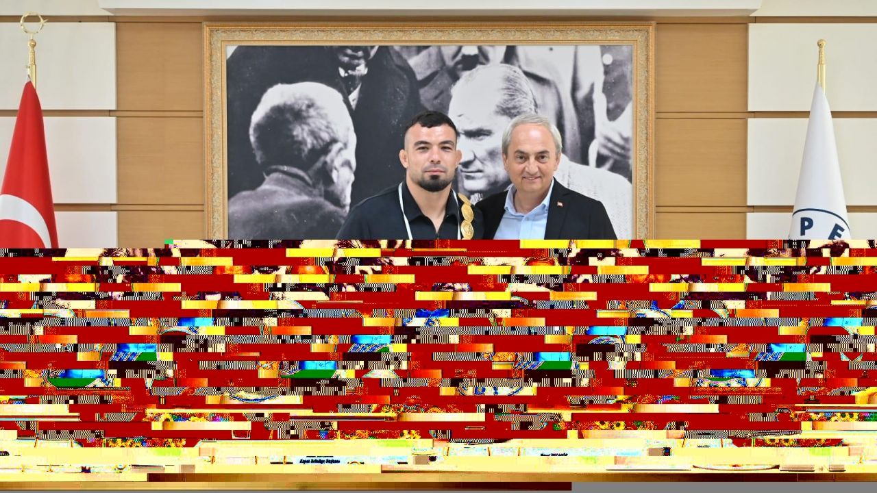 ANTALYA (AA)- 663. Tarihi Kırkpınar Yağlı Güreşleri başpehlivanı Yusuf Can Zeybek, Kepez Belediye Başkanı Mesut Kocagöz'e ziyarette bulundu.
