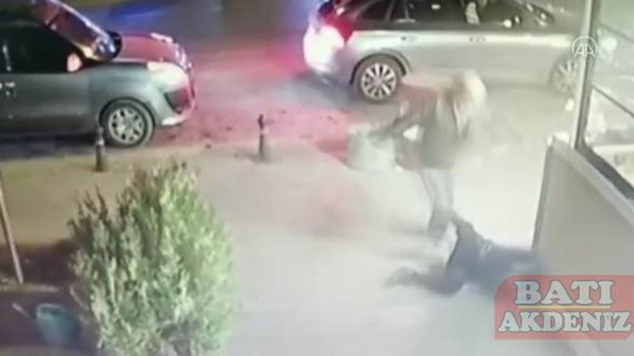 Güvenlik kamerası görüntülerinde, D.Ö, restorandan uzaklaşırken Y.Ç'nin arkasından koşarak gelip tekmeleyerek boğazından tutarak yere düşürmesi ve ardından D.Ö'yü yerde de tekmelemeye devam etmesi yer alıyor. Görüntünün devamında ise restoranda çalışanların Y.Ç'yi kadının üzerinden alarak uzaklaştırması görünüyor.