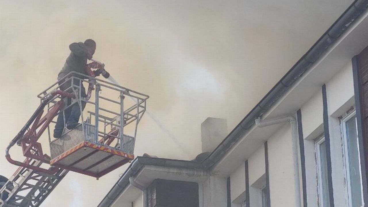 Eşeler Mahallesi'nde 3 katlı öğrenci pansiyonun çatı katında henüz belirlenemeyen nedenle yangın çıktı.