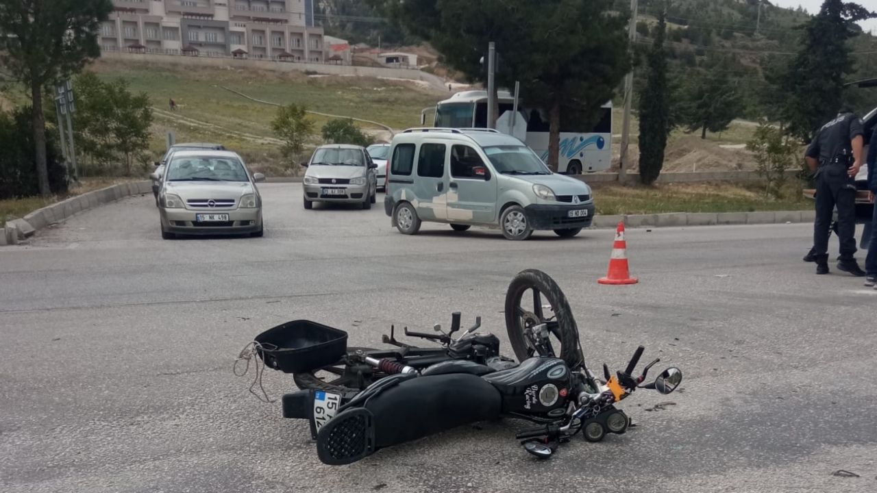 Kazada yaralanan motosiklet sürücüsü ile otomobildeki Aynur K. Burdur Devlet Hastanesine kaldırıldı.