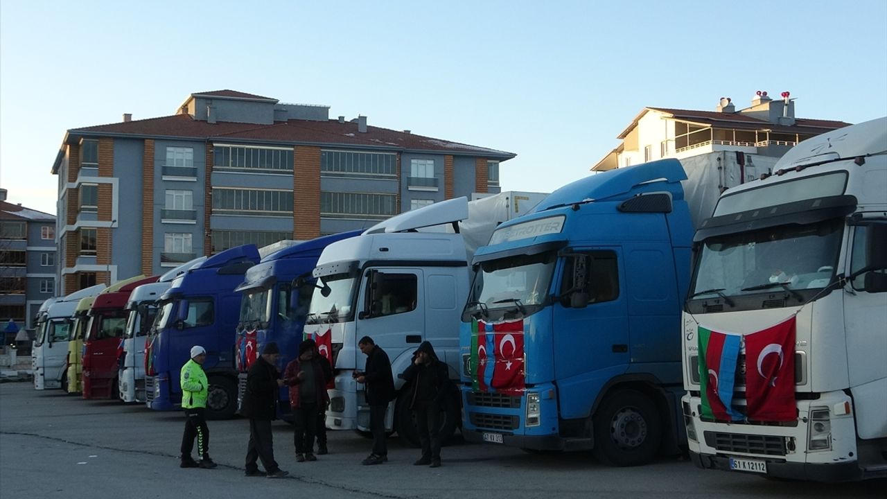 GÖRÜNTÜ DÖKÜMÜ : - Azerbaycan yardım tırı arıza yaptı konvoy Çorum'da mola vermesi - Trafik polislerince kafilede bulunanlara yemek ve çay ikramı yapması - Arıza sonrası konvoy polis eskortu ile deprem bölgesine gönderilmesi Arıza yapan Azerbaycan'a ait yardım tırı Çorum'da ücretsiz tamir edildi ÇORUM (AA) - Gürcistan'dan Kahramanmaraş'taki depremzedelere yardım malzemesi götürürken arızalanan Azerbaycan'a ait yardım tırı, Çorum'da ücretsiz tamir edildikten sonra yola devam etti. "Asrın felaketi" olarak nitelendirilen Kahramanmaraş merkezli 7,7 ve 7,6 büyüklüğündeki depremlerin ardından Azerbaycan'dan hareket eden yardım malzemesi yüklü 3 tır, Gürcistan'ın Batum şehrini geçerek, Sarp Sınır Kapısı'ndan Türkiye'ye giriş yaptı. Doğu Karadeniz Bölgesi'nde ilerleyerek Çorum'a ulaşan tırlardan biri arıza yaptı. 112 Acil Çağrı Merkezi'ne düşen yardım çağrısı üzerine arıza yapan tır tamir edilmesi için servise götürülürken, diğerleri ise polis koruması eşliğinde Ticaret ve Sanayi Odası Fuar Alanı'na park edildi. Çorum Emniyet Müdürlüğü Trafik Denetleme Şube Müdürlüğü ekipleri, Azerbaycanlı arama kurtarma ve insani yardım ekibine çay ikram etti. Yaklaşık 1 saat süren çalışmayla arızası giderilen tır, trafik ekiplerinin kontrolünde Çorum'dan ayrıldı. Bakım servisinin, tırın depremzedelere yardım taşımasından dolayı tamir ücreti almadığı öğrenildi.
