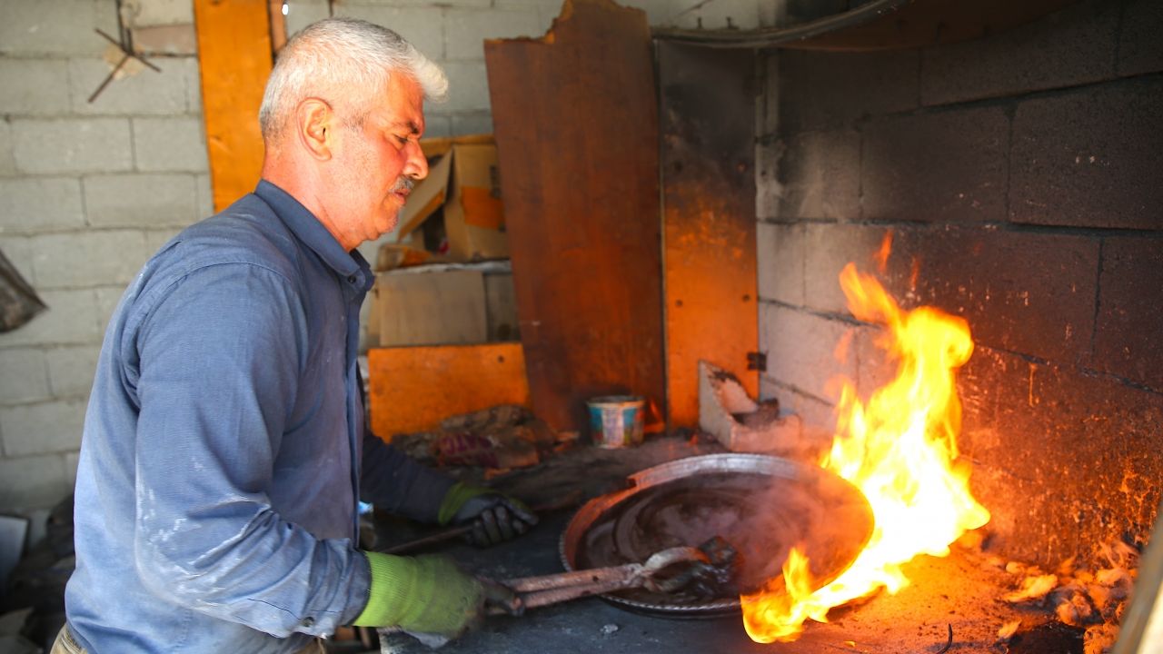 HATAY (AA) - MEHMET BAYRAK - Hatay'da depremlerde iş yerini kaybeden kalaycı ustası, kendi imkanlarıyla inşa ettiği 9 metrekarelik iş yerinde dede mesleğini yaşatmaya devam ediyor.