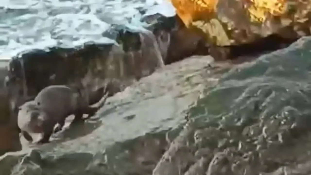 Sefer DEMİR / DÜZCE (İGFA) - Düzce'nin Akçakoca ilçe merkezine yakın kayalıklarda yaşadığı tespit edilen su samurunu kayıt altına alan İbrahim Bilgin, sevimli hayvana 'Sumrucuk' adını verdi.