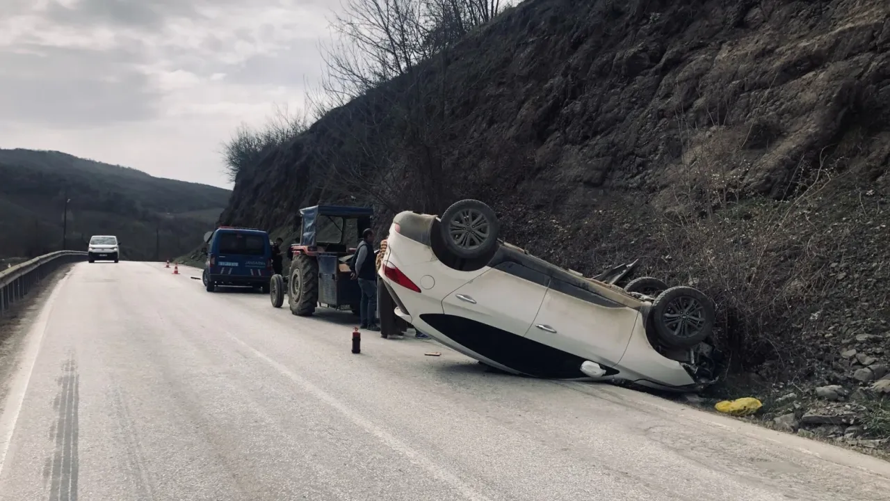 Sefer DEMİR / DÜZCE (İGFA) - Düzce'nin Yığılca ilçesi Aksu mevkisinde seyir halinde olan Murat Ö. idaresindeki 81 ACF 584 plakalı otomobil, sürücüsünün direksiyon hakimiyetini kaybetmesi sonucu devrildi.