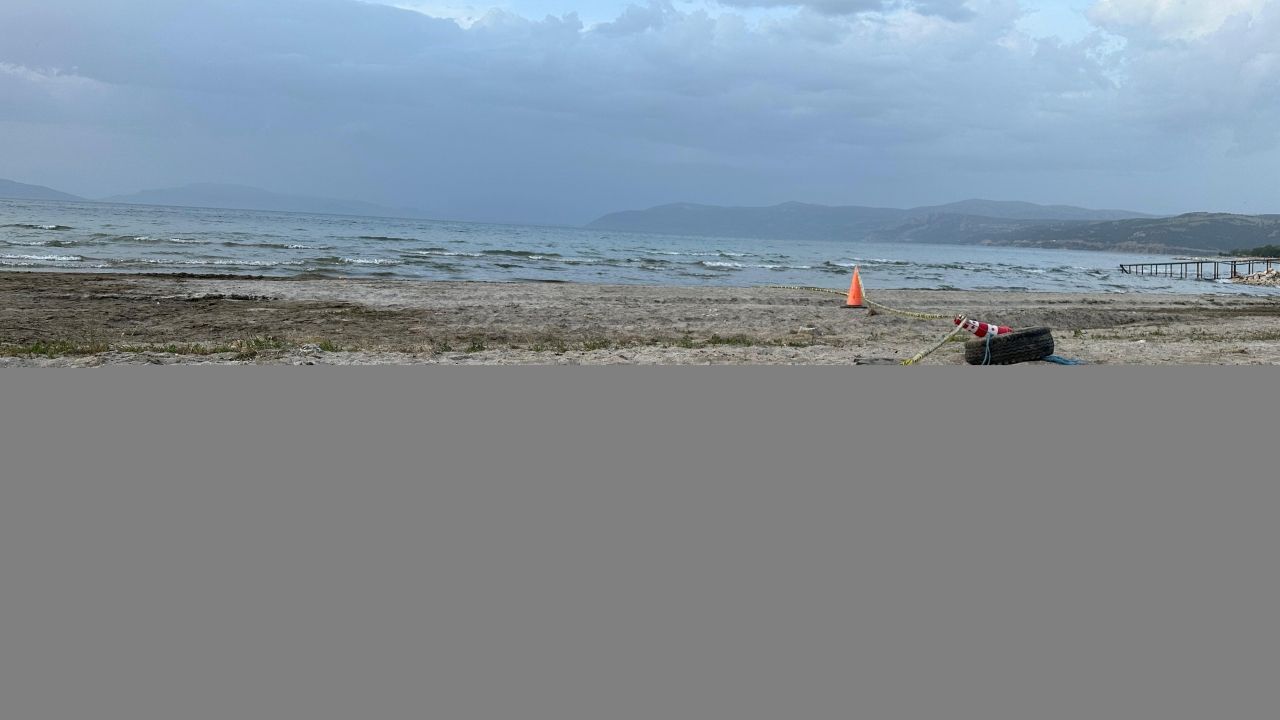 Sahilde nöbet tutan ekipler, el bombalarının bulunduğu alanı güvenlik şeridi ile kapattı.