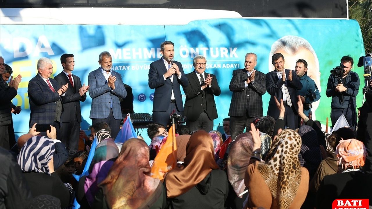 "1 Nisan'da inşallah Mehmet Öntürk başkanımız sizlere hizmet için büyük bir yola çıkacak. Çok projeler var. Bunlar için 7 gün 24 saat çalışması lazım. Onun için biz de kendisine inşallah destek olacağız. Aklı başka yerde olan, yarı zamanlı, gel-git belediyecilikle değil, 7 gün 24 saat vatandaşı ve hizmeti düşünen, bu projeleri hayata geçirmek isteyen bir belediyecilik anlayışına ihtiyaç var. Bizim anlayışımız budur. Bizim hizmet siyasetimiz bunu gerektirir. Bu uğurda biz çalışmaya söz veriyoruz. Bu şehir çok büyük bir deprem felaketi yaşadı. Buradan çıktık, çıkacağız ve çok daha güzel bir Hassa, Hatay olacak. Memleketimiz bu anlamda güzel şehirlere kavuşacak. Burada doğal gaz hizmetinin geldiği, elektrik hizmetlerinin sağlandığı, belediyenin en önemli görevi olan su hizmetlerinin sunulduğu, temiz ve toz, toprak içinde olmayan yollarımız olacak."