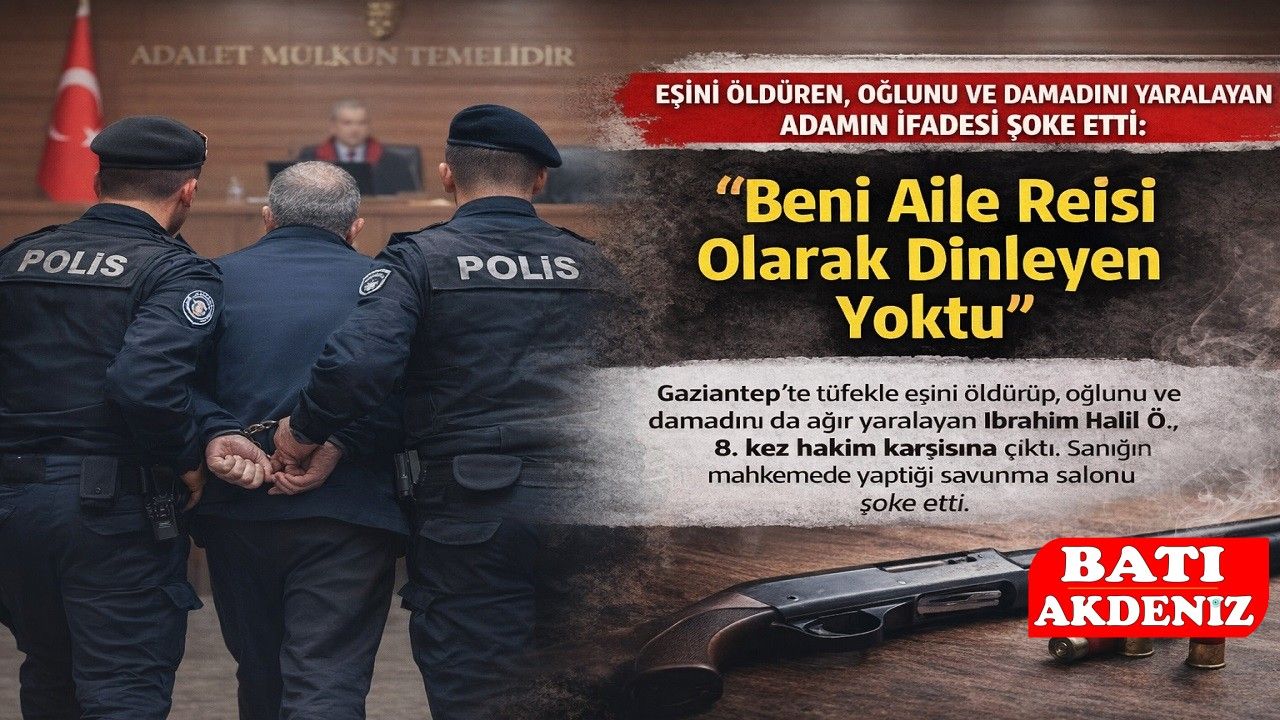 Gaziantep’te yaşanan aile içi vahşetin davasında sanık İbrahim Halil Ö., bugün 8’inci kez hakim karşısına çıktı. Eşini tüfekle öldüren, oğlunu ve damadını ise ağır yaralayan sanığın mahkeme salonunda yaptığı savunma, duruşmayı izleyenleri şoke etti.