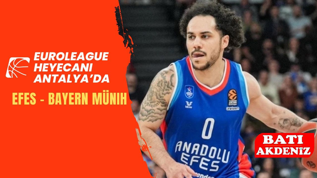 EuroLeague’in 11. haftasında Anadolu Efes, Almanya temsilcisi Bayern Münih ile karşılaşmak üzere Antalya’ya çıkıyor. Müsabaka 14 Kasım 2025 Cuma günü saat 20.00’de Antalya Spor Salonu’nda oynanacak.