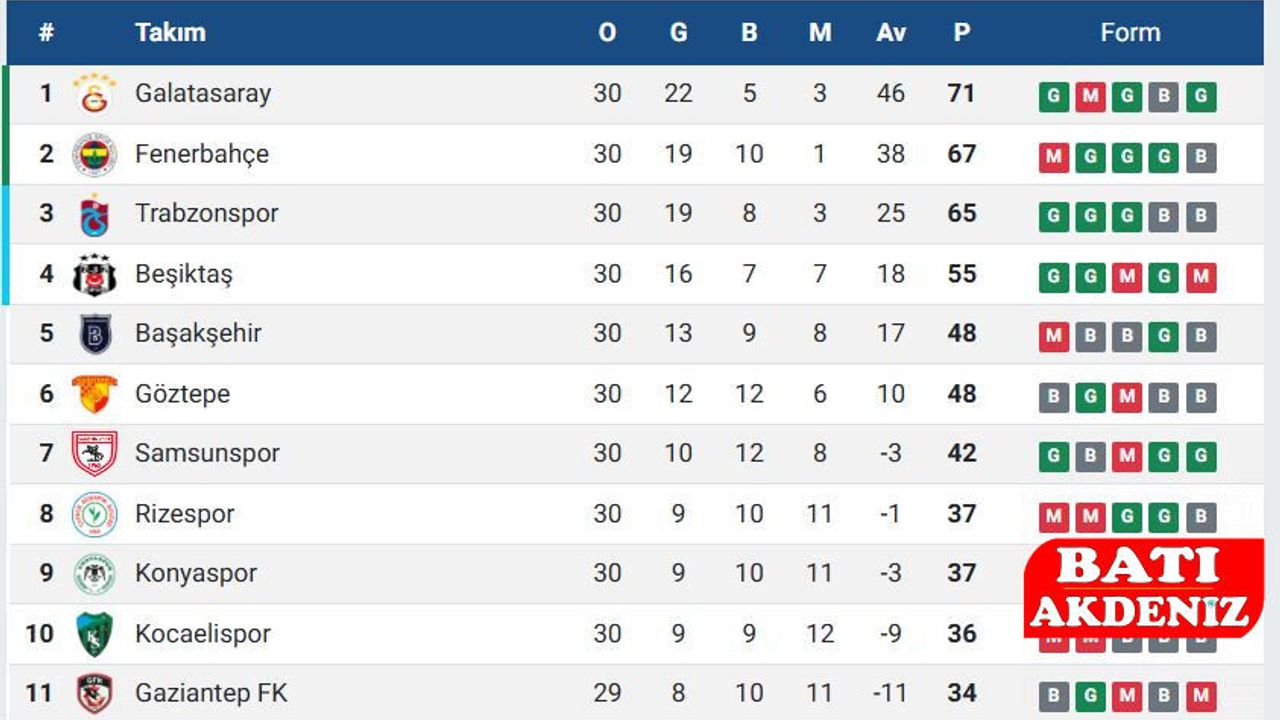 | 1 | Galatasaray | 30 | 22 | 5 | 3 | 46 | 71 | GMGBG | ||||