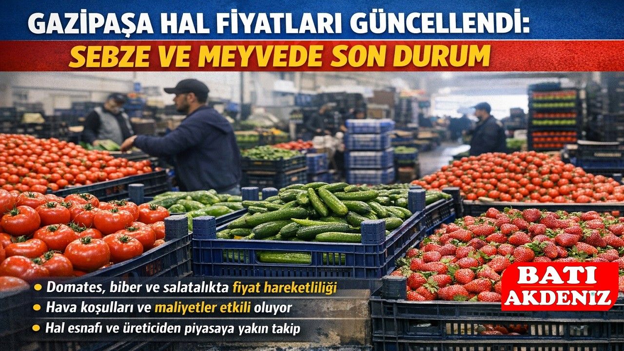 Gazipaşa Halinde işlem gören sebze ve meyve fiyatları güncellendi. Özellikle domates, biber ve salatalık gruplarında fiyat hareketliliği yaşanırken, üretim maliyetleri ve hava koşulları fiyatlar üzerinde belirleyici olmaya devam ediyor.