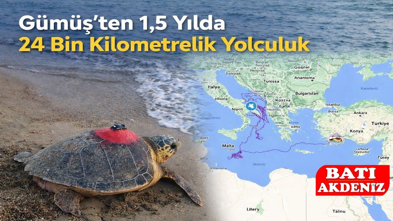 Antalya kıyılarında yürütülen bilimsel izleme çalışmaları kapsamında uydu takip cihazı takılan deniz kaplumbağası “Gümüş”, Akdeniz’in derinliklerinde sürdürdüğü yolculuğuyla dikkat çekiyor. Yaklaşık 1,5 yıldır kesintisiz takip edilen Gümüş’ün bugüne kadar 24 bin kilometreyi aşan bir göç rotası izlediği belirlendi.