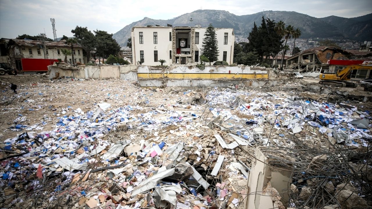 HATAY (AA) - SERKAN AVCI/MEHMET BAYRAK - Kahramanmaraş merkezli depremlerde 11 akrabasını kaybeden Hatay Büyükşehir Belediyesi çalışanı Mehmet Bayraktar, yıkılan kurum binasındaki evrak ve malzemeleri enkazdan çıkarmak için nöbet tutuyor.