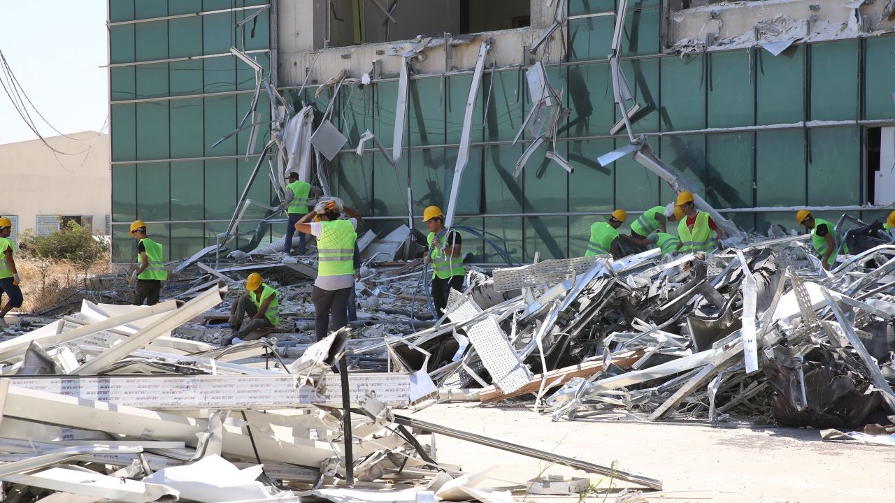 Çevresinde güvenlik önlemi alınan hastanede ekipler, ilk olarak söküm çalışması gerçekleştiriyor.