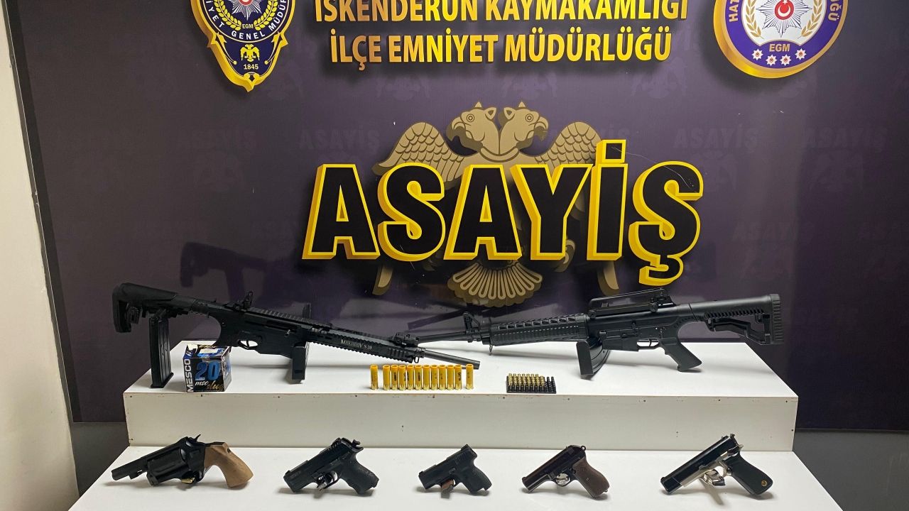 Gözaltına alınan zanlılar İ.K, S.B.K, A.O, B.İ. ve H.G'nin adreslerinde ruhsatsız 5 tabanca ve 2 tüfek ile 28 kartuş ve 48 fişek ele geçirildi.