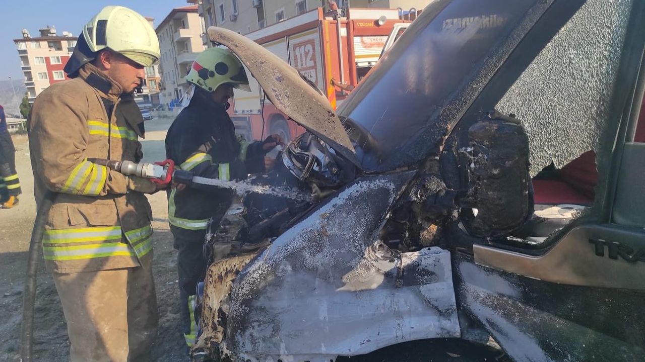 Yangın nedeniyle pikapta hasar meydana geldi.