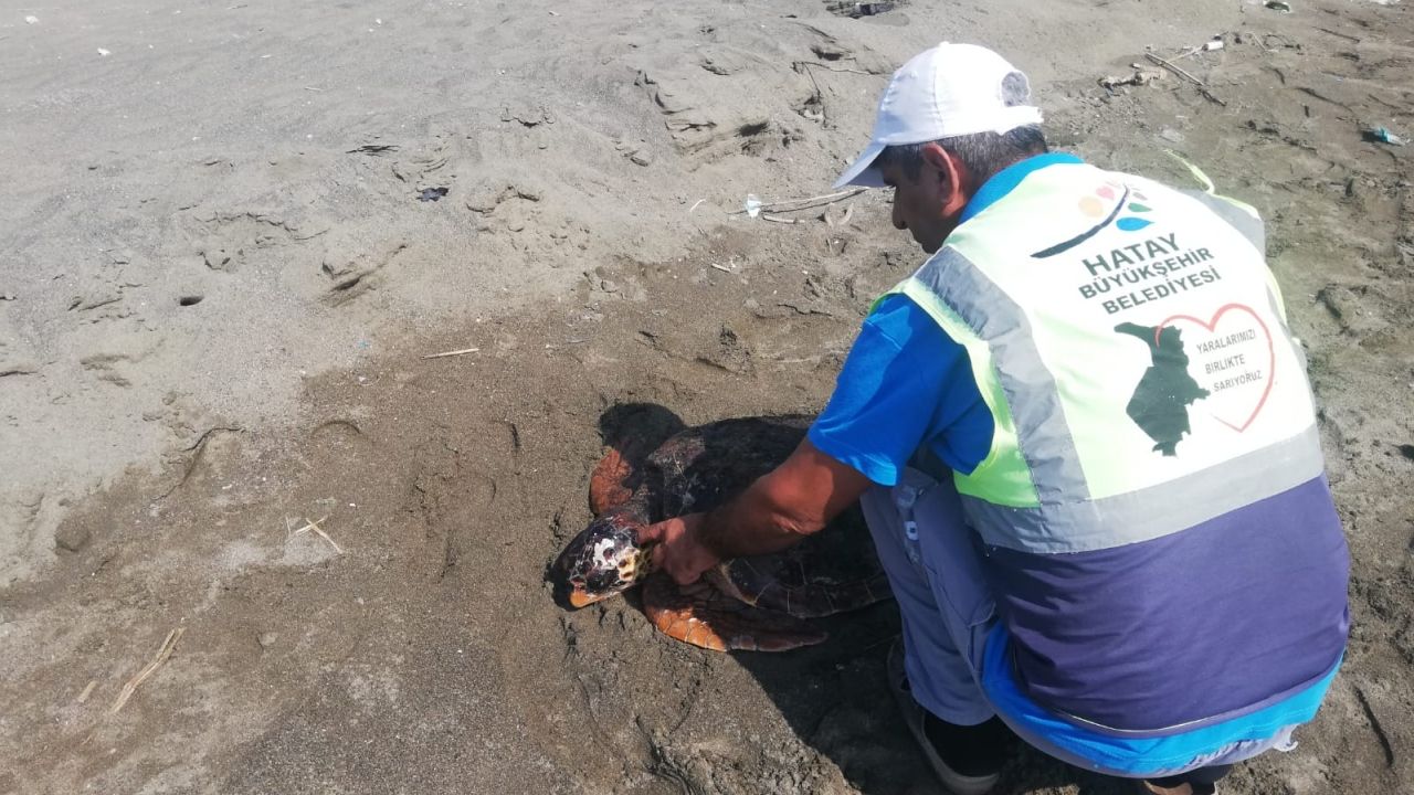Bölgeye sevk edilen Doğa Koruma ve Milli Parklar Hatay Şube Müdürlüğü ekipleri, caretta caretta cinsi deniz kaplumbağasının başından yaralı olduğunu belirledi.