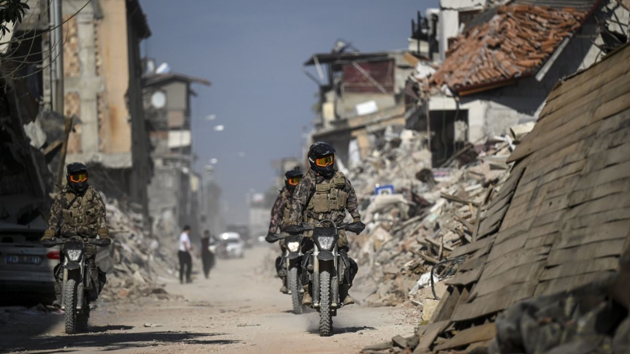 Hatay'da görevlendirilen Emniyet Genel Müdürlüğü Özel Harekat Daire Başkanlığı bünyesindeki özel harekat polisleri, yıkılan binalar nedeniyle kapanan sokaklarda veya araç giremeyen mahallelerde kros motosikletleriyle devriye geziyor.