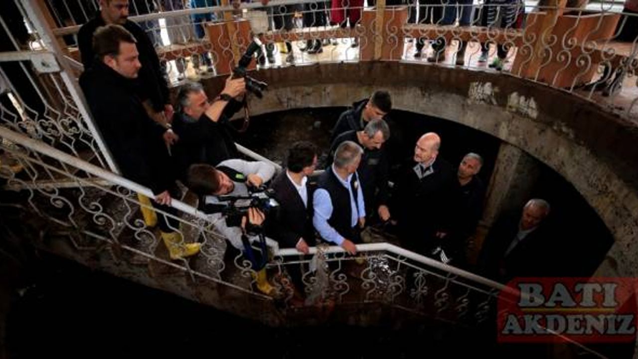 Soylu, belediye binasının altındaki kapalı otoparkta su altında kalan belediyeye ve vatandaşlara ait araçların kurtarılma çalışmasını da takip etti.