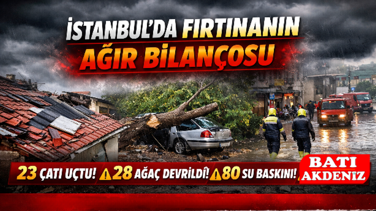 İstanbul Valiliği, İstanbul’da dün etkili olan şiddetli fırtınanın ardından oluşan hasara ilişkin kamuoyunu bilgilendirdi. Valilikten yapılan açıklamaya göre, kent genelinde fırtına nedeniyle 23 çatının uçtuğu, 28 ağacın devrildiği ve 80 ayrı noktada su baskını yaşandığı bildirildi.